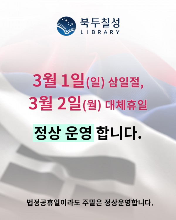 삼일절 정상운영 페이지 정보 작성자관리자 댓글 0건 조회 5회 작성일 26-02-22 22:12 본문 날짜 : 2026-03-01 목록 이전글대체휴일 정상운영 26.02.22 다음글2월 해질녘 콘서트 26.02.06 댓글목록 댓글목록 등록된 댓글이 없습니다.