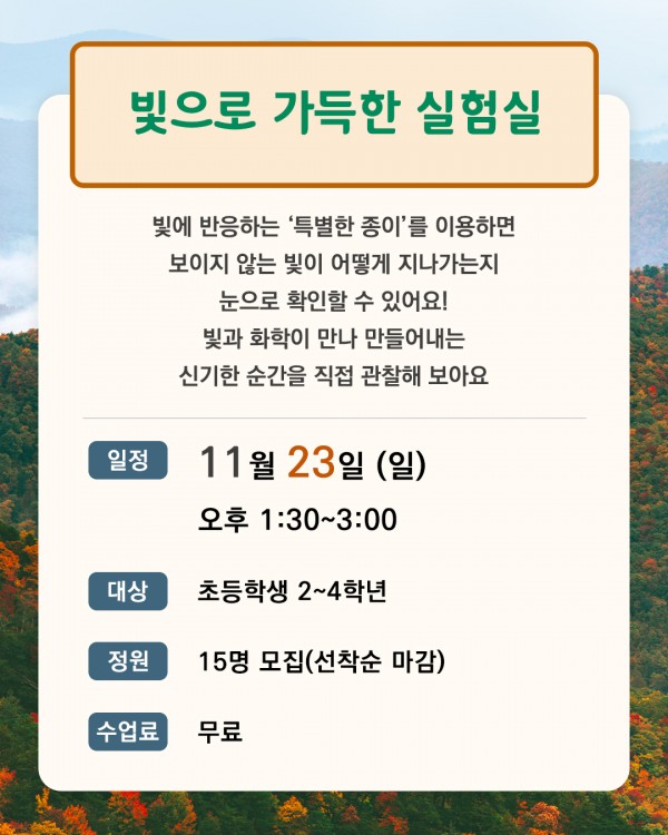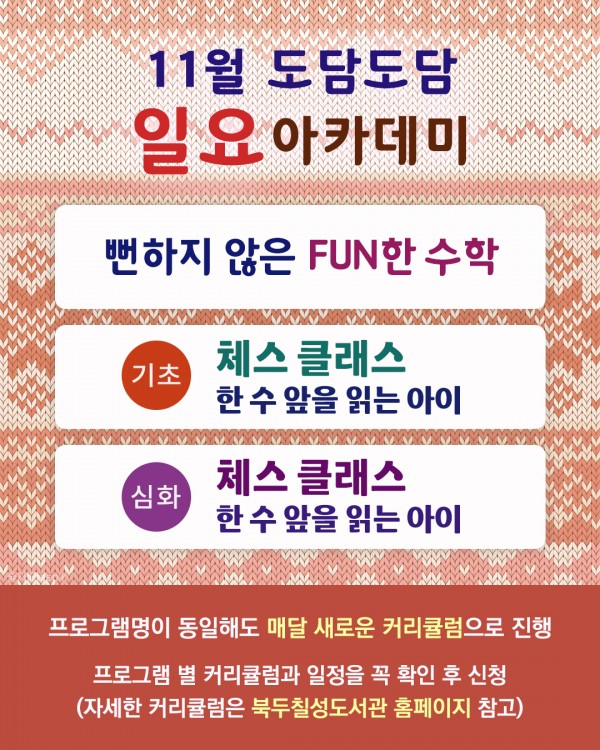 도담도담 일요 아카데미, 원데이 특강 페이지 정보 작성자관리자 댓글 0건 조회 1회 작성일 25-10-23 16:02 본문 날짜 : 2025-11-23 목록 다음글도담도담 토요 아카데미, 원데이 특강 25.10.23 댓글목록 댓글목록 등록된 댓글이 없습니다.
