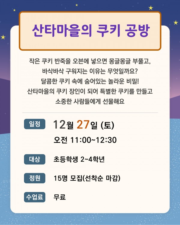 도담도담 토요 아카데미, 원데이특강 페이지 정보 작성자관리자 댓글 0건 조회 5회 작성일 25-11-20 17:36 본문 날짜 : 2025-12-27 목록 이전글도담도담 일요 아카데미, 북두칠성도서관으로 나랑 별보러 가지않을래? 25.11.20 다음글도담도담 토요 아카데미, 원데이특강 25.11.20 댓글목록 댓글목록 등록된 댓글이 없습니다.