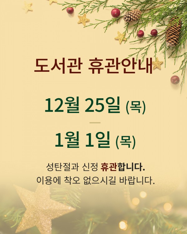 크리스마스 휴관 페이지 정보 작성자관리자 댓글 0건 조회 2회 작성일 25-12-19 18:44 본문 날짜 : 2025-12-25 목록 이전글신정 휴관 25.12.19 다음글11월 해질녘콘서트, 도담도담 부모 클래스 25.11.27 댓글목록 댓글목록 등록된 댓글이 없습니다.