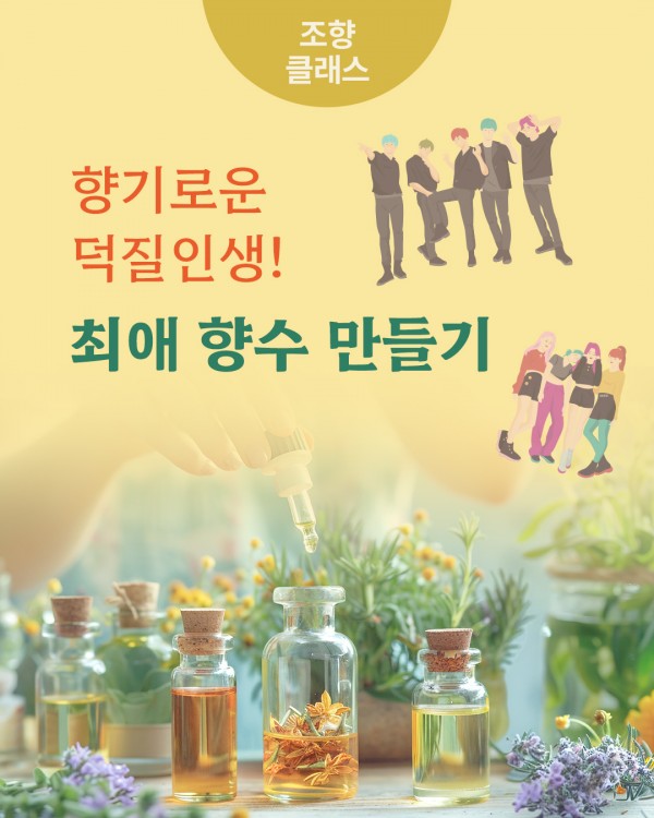 원데이클래스 [조향 클래스: 향기로운 덕질인생! 최애 향수 만들기] 페이지 정보 작성자관리자 댓글 0건 조회 1회 작성일 25-12-20 11:54 본문 날짜 : 2026-01-21 목록 이전글원데이클래스 [나에게 어울리는 컬러로 완성하는 퍼스널 메이크업 클래스] 25.12.20 다음글원데이클래스 [전문가와 함께하는 미술심리 클래스] 25.12.20 댓글목록 댓글목록 등록된 댓글이 없습니다.