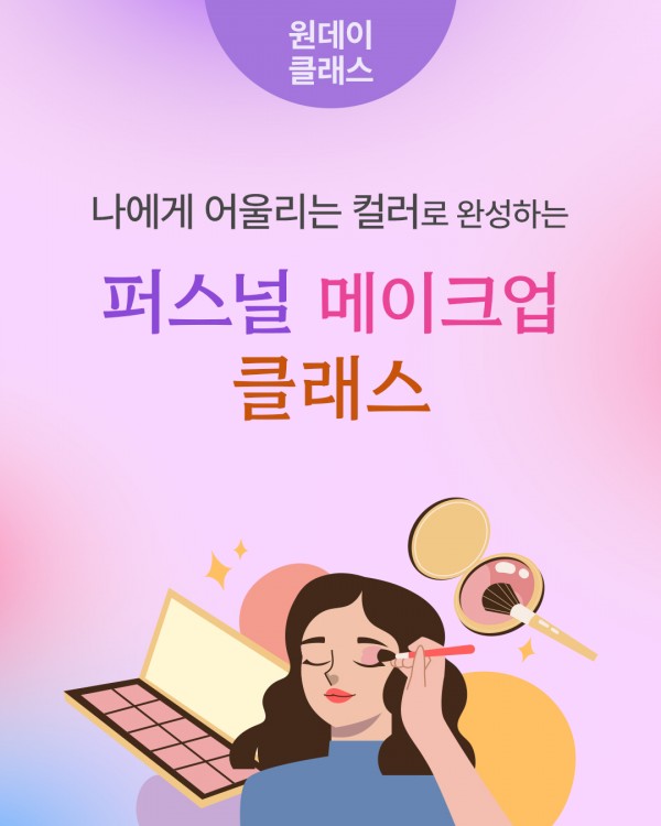 원데이클래스 [나에게 어울리는 컬러로 완성하는 퍼스널 메이크업 클래스] 페이지 정보 작성자관리자 댓글 0건 조회 1회 작성일 25-12-20 11:55 본문 날짜 : 2026-01-23 목록 이전글독서클럽[싱글남녀 마흔두번째 연애이야기] 25.12.20 다음글원데이클래스 [조향 클래스: 향기로운 덕질인생! 최애 향수 만들기] 25.12.20 댓글목록 댓글목록 등록된 댓글이 없습니다.