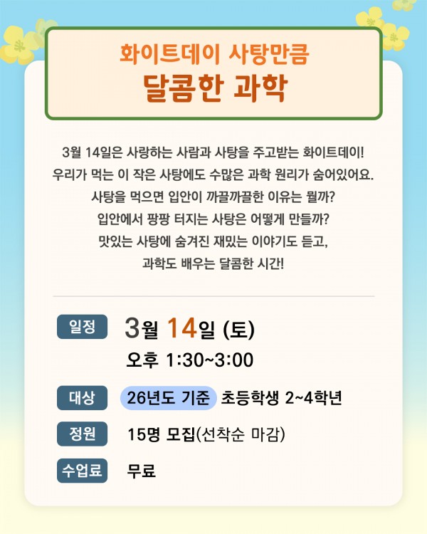 도담도담 토요 아카데미, 원데이특강 페이지 정보 작성자관리자 댓글 0건 조회 2회 작성일 26-02-23 19:48 본문 날짜 : 2026-03-14 목록 이전글도담도담 일요 아카데미, 원데이특강 26.02.23 다음글도담도담 일요 아카데미, 원데이특강 26.02.23 댓글목록 댓글목록 등록된 댓글이 없습니다.