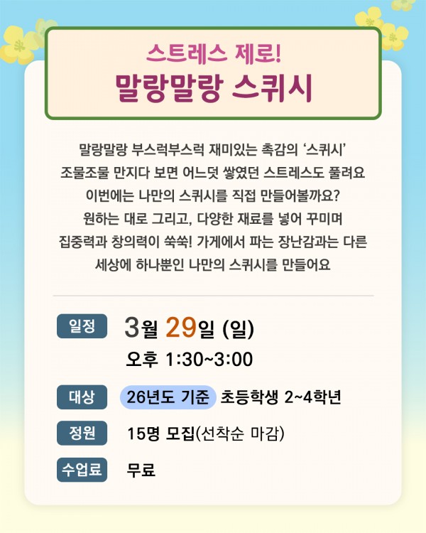 도담도담 일요 아카데미, 원데이 특강 페이지 정보 작성자관리자 댓글 0건 조회 1회 작성일 26-02-23 19:53 본문 날짜 : 2026-03-29 목록 이전글원데이클래스 [茶다락방: 말차 클래스] 26.02.23 다음글도담도담 토요 아카데미, 3월 해질녘 콘서트 26.02.23 댓글목록 댓글목록 등록된 댓글이 없습니다.