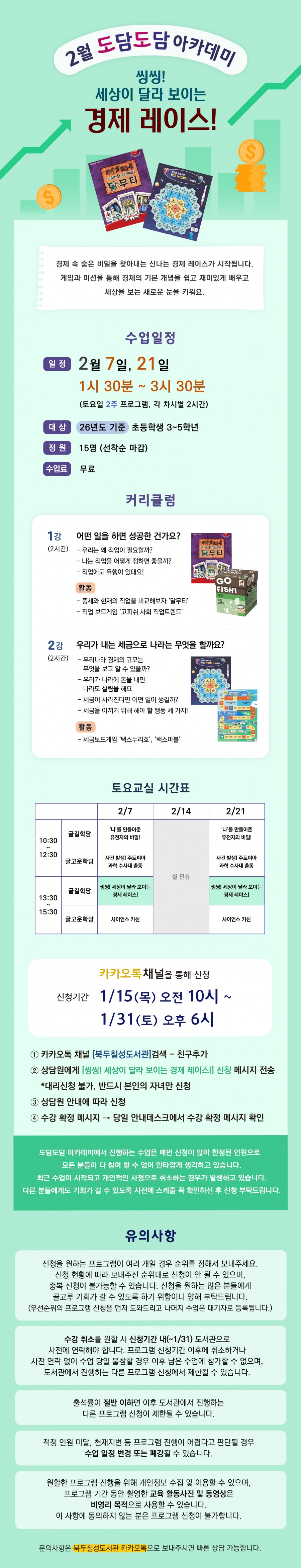 예정 2월 토요 아카데미) 씽씽! 세상이 달라 보이는 경제 레이스!