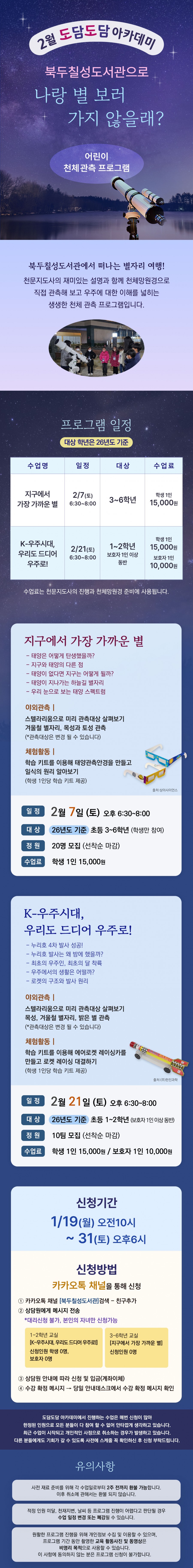 예정 2월 도담도담 아카데미) 북두칠성도서관으로 나랑 별보러 가지 않을래?