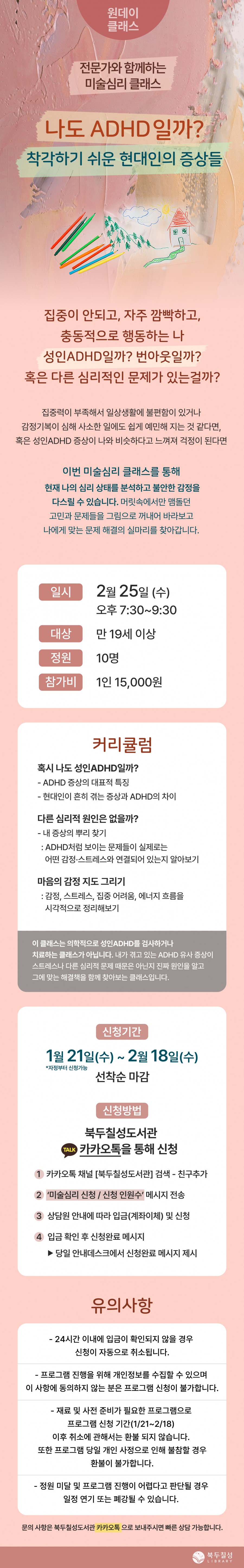 제목 : 2월 클래스) 전문가와 함께하는 미술심리 클래스 '나도 ADHD일까? 착각하기 쉬운 현대인의 증상들'