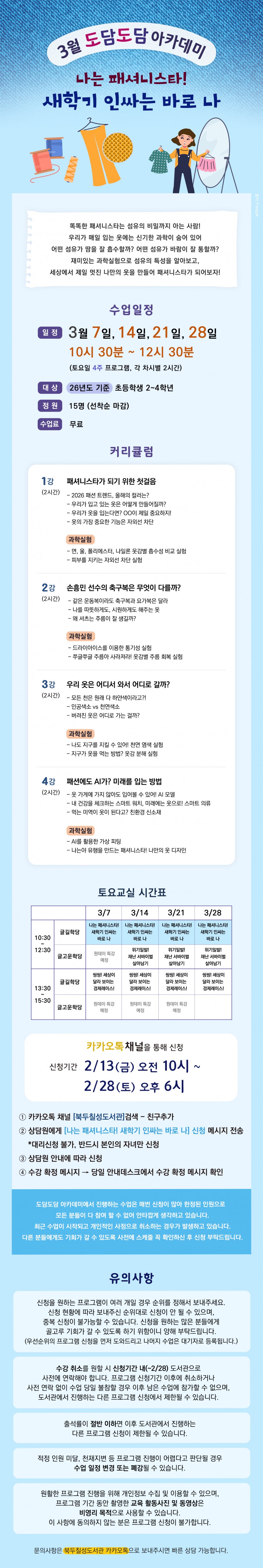 예정 3월 토요 아카데미) 나는 패셔니스타! 새학기 인싸는 바로 나