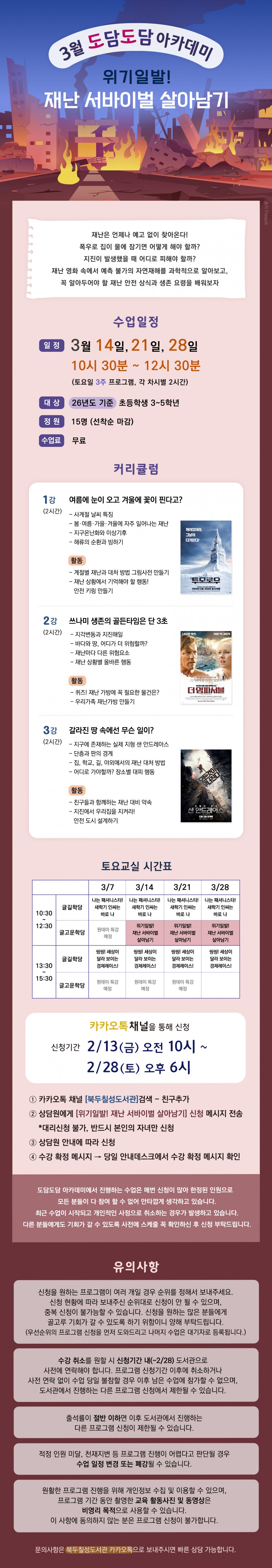제목 : 3월 토요 아카데미) 위기일발! 재난 서바이벌 살아남기