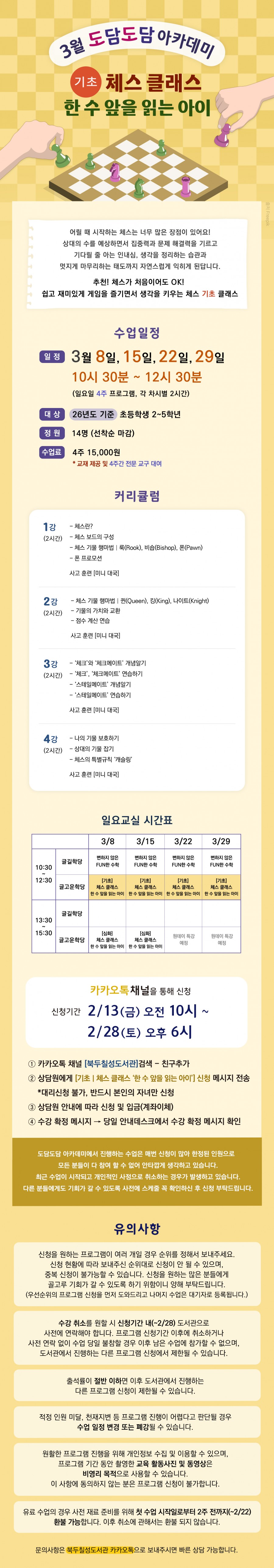 제목 : 3월 일요 아카데미) [기초] 체스 클래스 '한 수 앞을 읽는 아이'