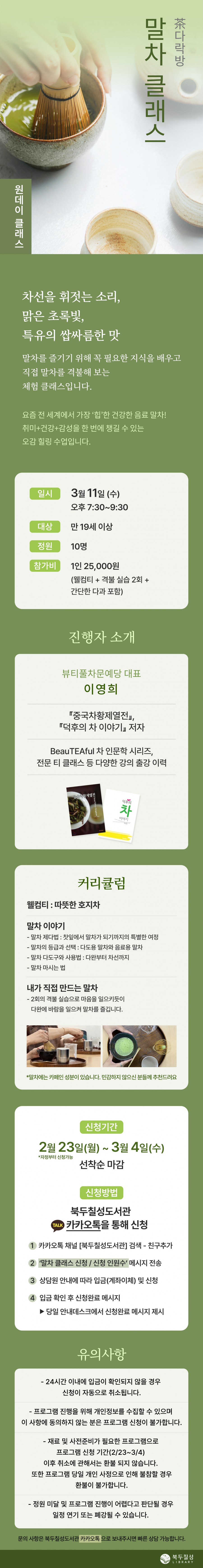 제목 : 3월 클래스) 茶다락방: 말차 클래스