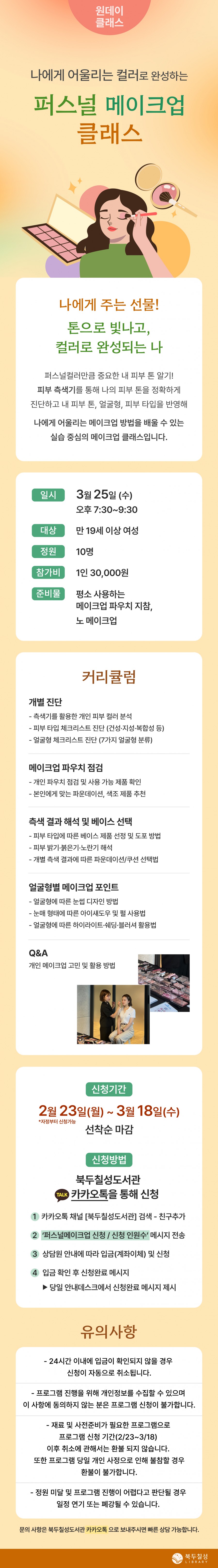 제목 : 3월 클래스) 나에게 어울리는 컬러로 완성하는 퍼스널 메이크업 클래스