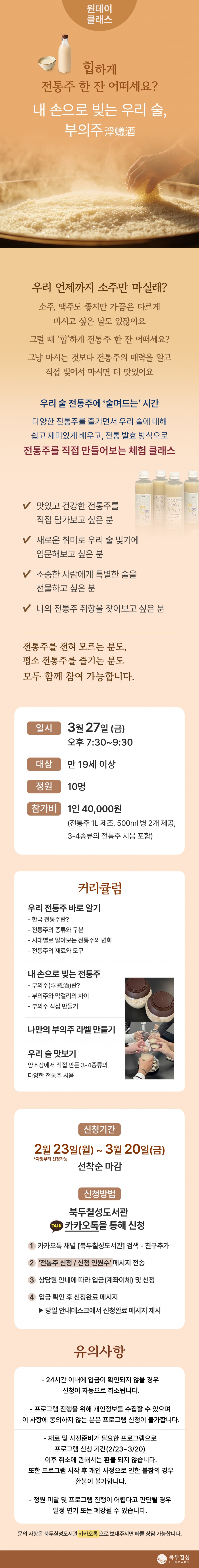제목 : 3월 클래스) 힙하게 전통주 한 잔 어떠세요?: 내 손으로 빚는 우리 술, 부의주(浮蟻酒)
