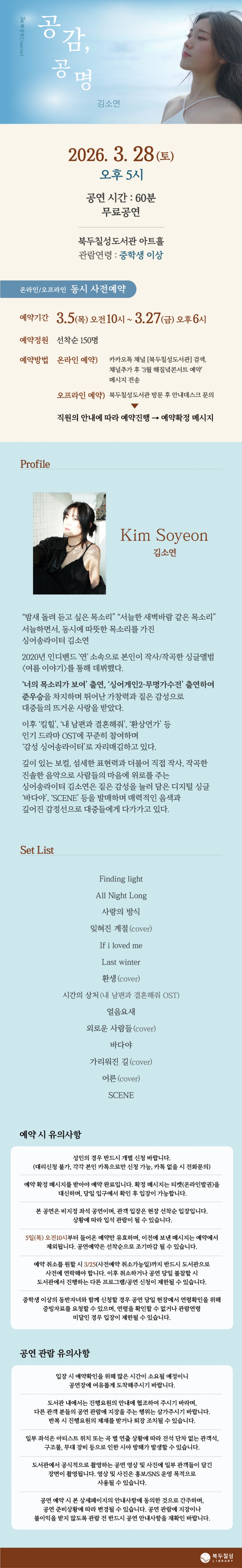 예정 3월 해질녘 콘서트 - 김소연 <공감, 공명>