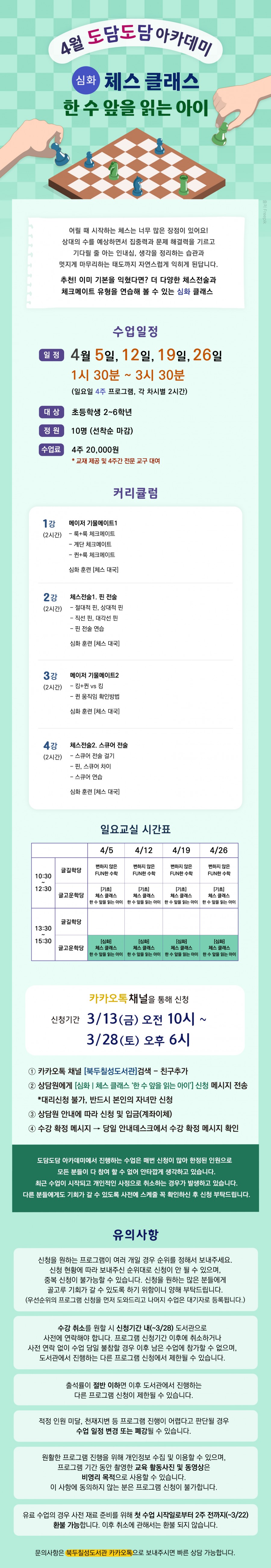 제목 : 4월 일요 아카데미) [심화] 체스 클래스 '한 수 앞을 읽는 아이'