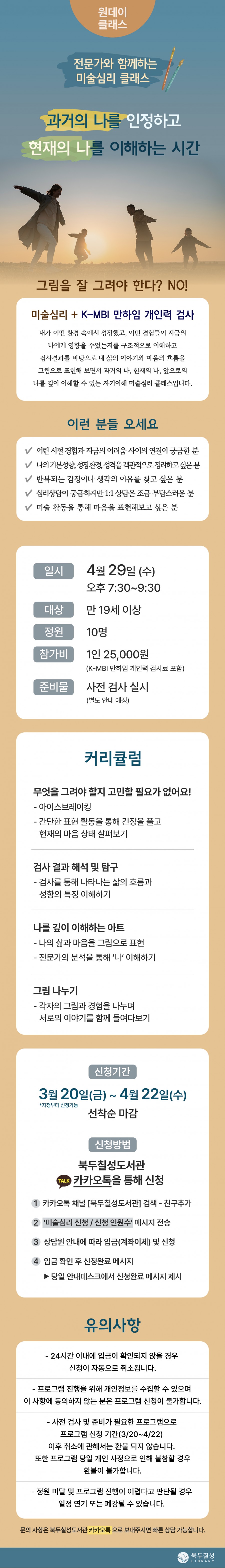 제목 : 4월 클래스) 전문가와 함께하는 미술심리 클래스 '과거의 나를 인정하고 현재의 나를 이해하는 시간'