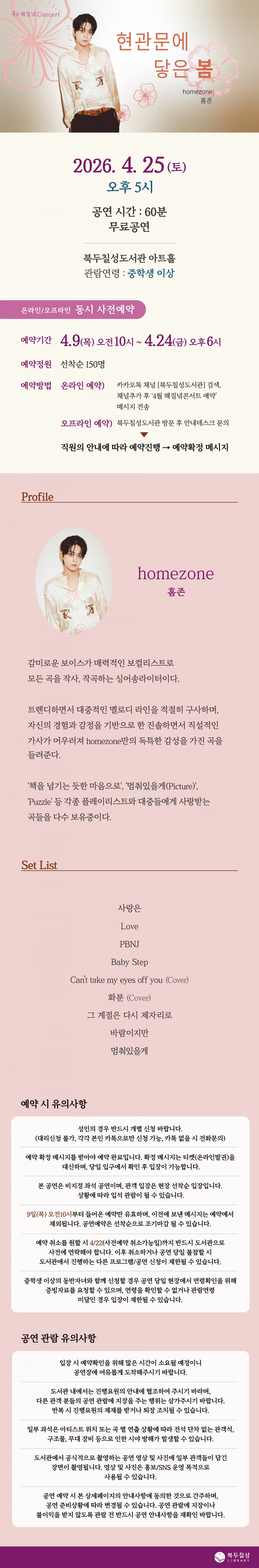 예정 4월 해질녘 콘서트 - 홈존 <현관문에 닿은 봄>