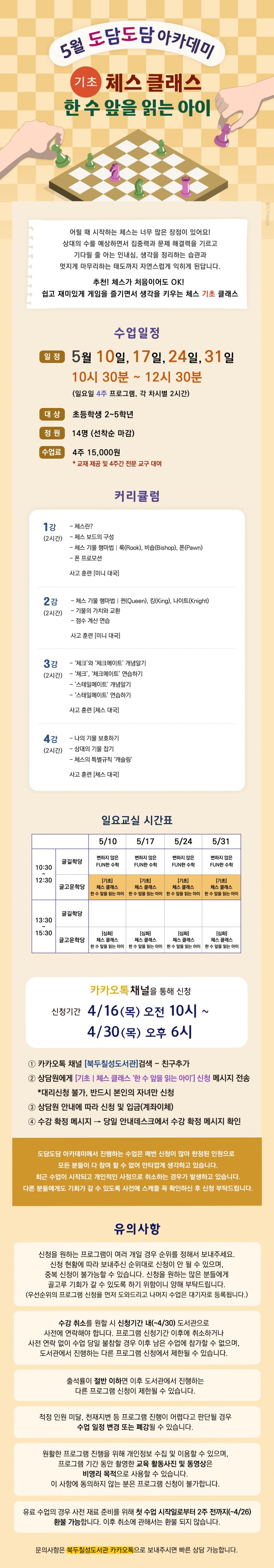 제목 : 5월 일요 아카데미) [기초] 체스 클래스 '한 수 앞을 읽는 아이'
