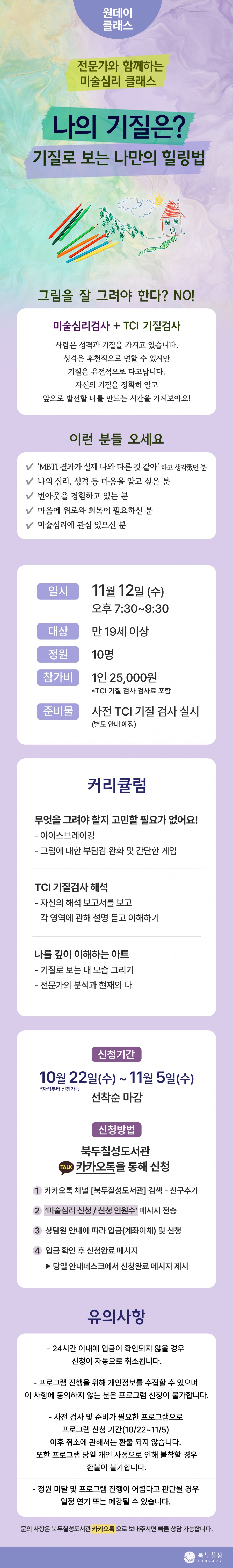 제목 : 11월 클래스) 전문가와 함께하는 미술심리 클래스 '나의 기질은? 기질로 보는 나만의 힐링법'