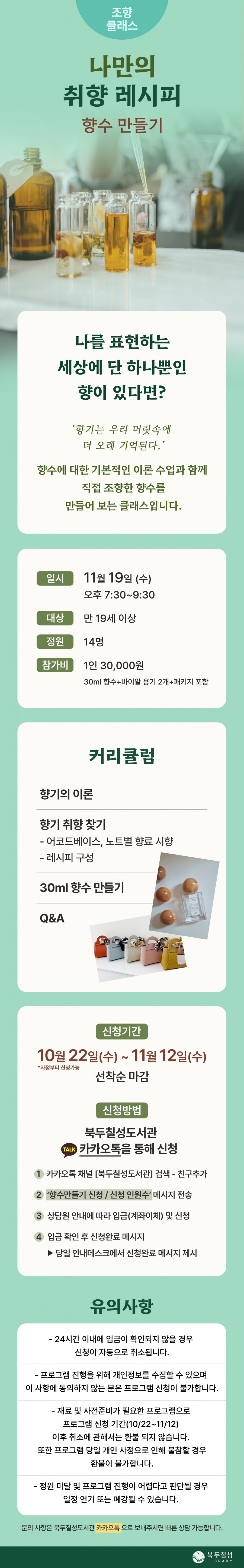 예정 11월 클래스) 나만의 취향 레시피 조향 클래스: 향수 만들기