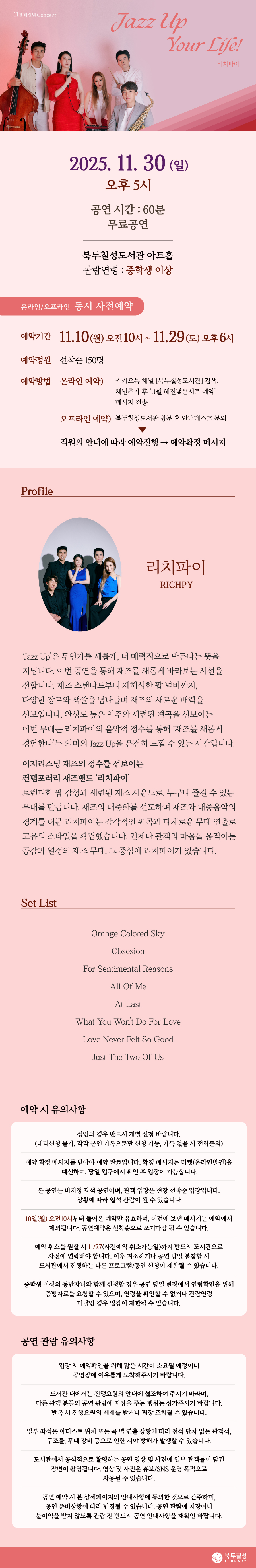 예정 11월 해질녘 콘서트 - 리치파이 <Jazz Up Your Life!>