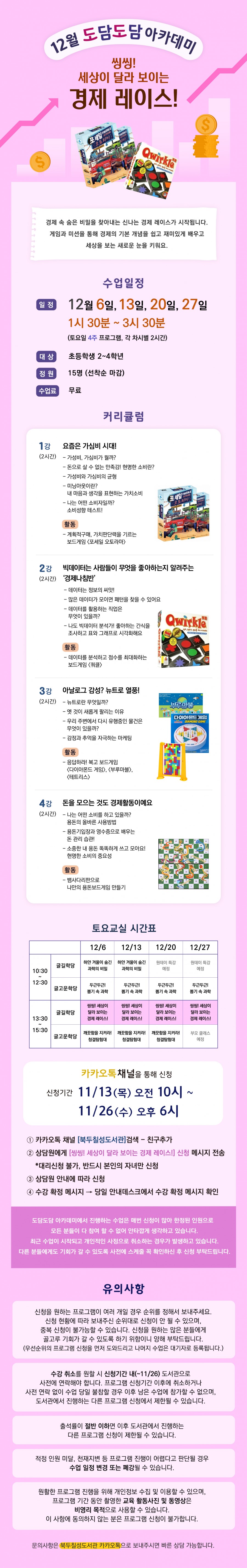 예정 12월 토요 아카데미) 씽씽! 세상이 달라 보이는 경제 레이스!