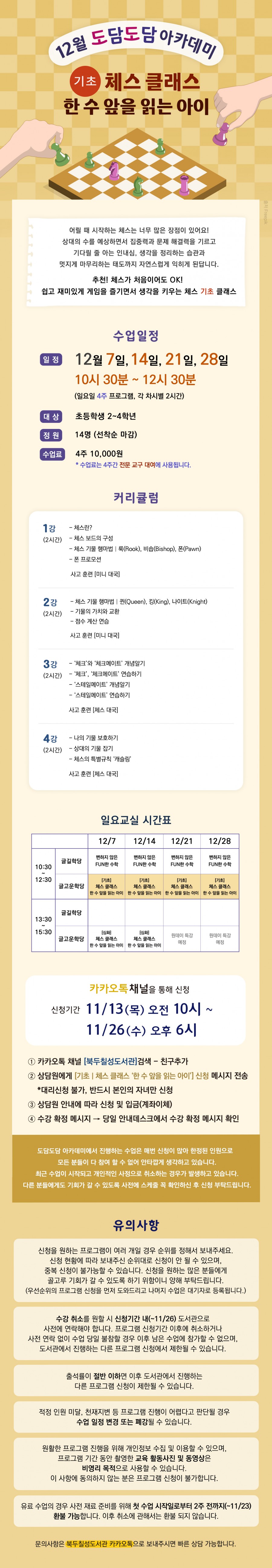 제목 : 12월 일요 아카데미) [기초] 체스 클래스 '한 수 앞을 읽는 아이'