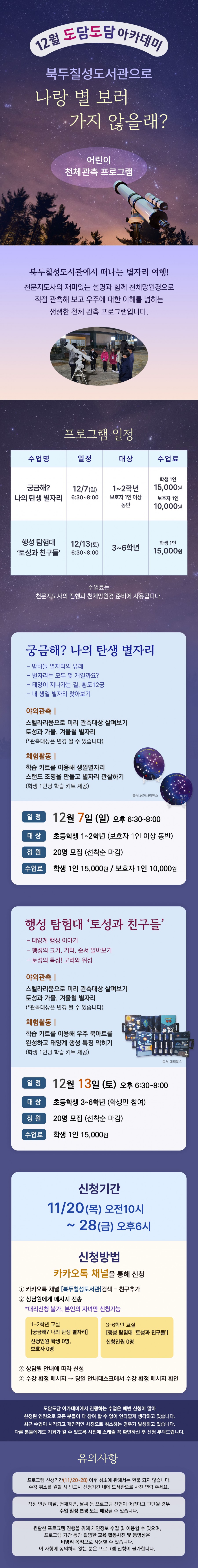 예정 12월 도담도담 아카데미) 북두칠성도서관으로 나랑 별보러 가지 않을래?