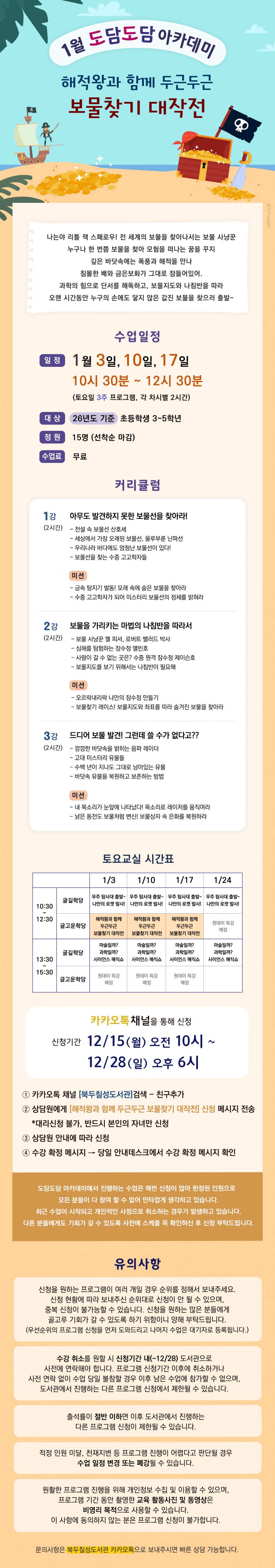 예정 1월 토요 아카데미) 해적왕과 함께 두근두근 보물찾기 대작전
