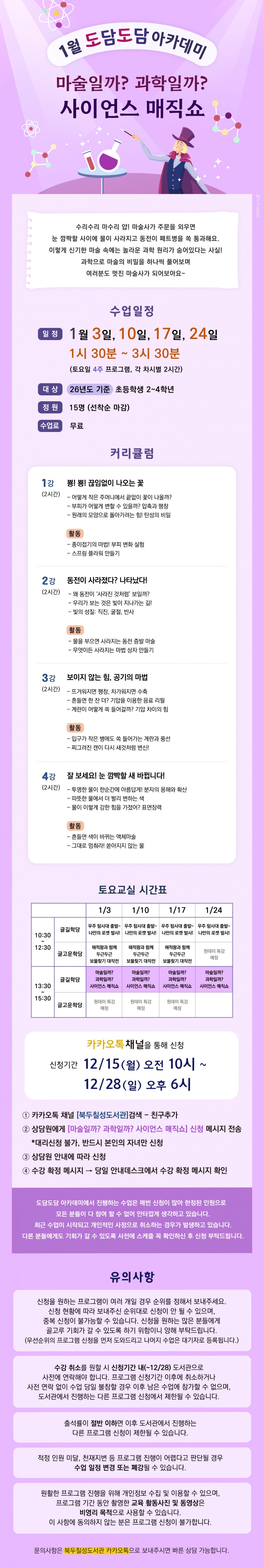 제목 : 1월 토요 아카데미) 마술일까? 과학일까? 사이언스 매직쇼