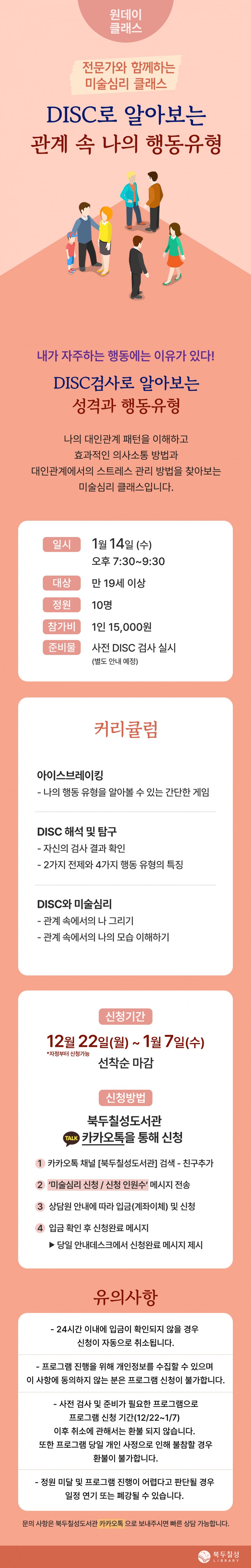 제목 : 1월 클래스) 전문가와 함께하는 미술심리 클래스 'DISC로 알아보는 관계 속 나의 행동유형'