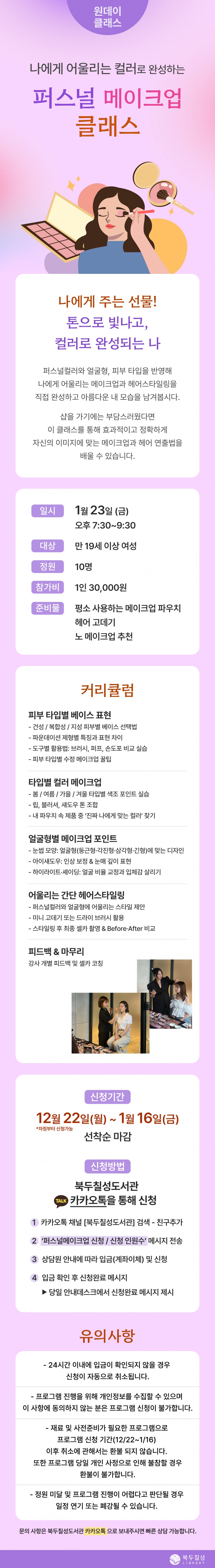 예정 1월 클래스) 나에게 어울리는 컬러로 완성하는 퍼스널 메이크업 클래스